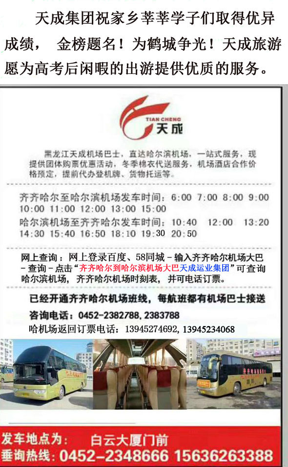 哈爾濱機(jī)場至齊齊哈爾巴士時(shí)間為: